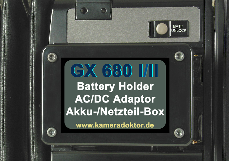 Custom made battery holder + AC/DC adapter for Fuji GX 680 I / II