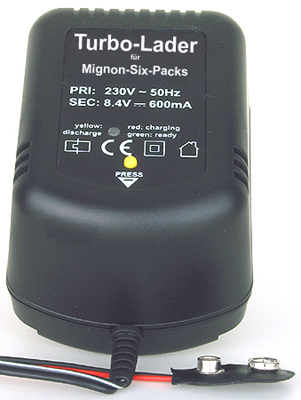 (six-pack filled with 6 fresh rechargeable NiMH-cells 1800mAh - charging time 13,5h)